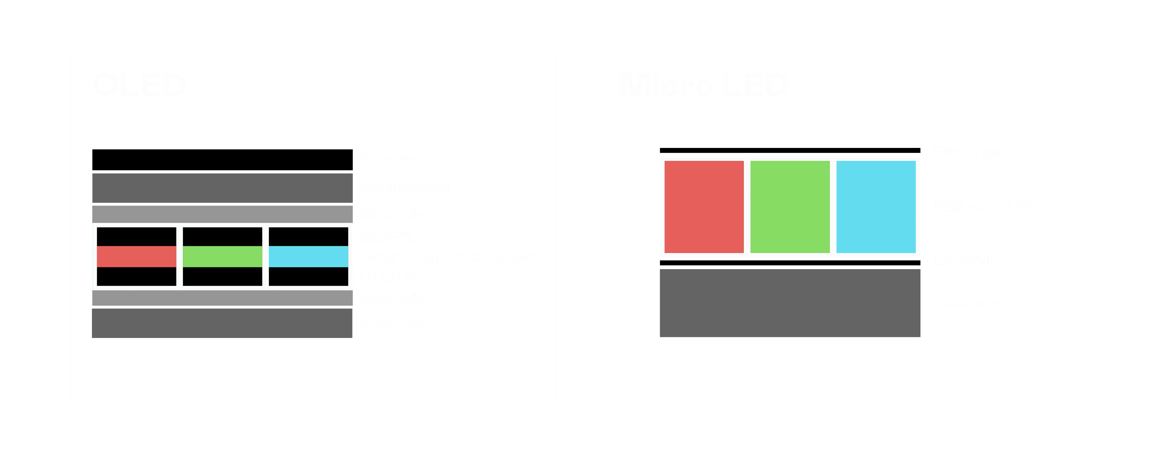 以 LED 做为显示画素,,,,可让 LED 的发光效率发挥到极致,,从而让显示器具备优异的亮度表现,,,,不论是在户外或室内,,,均具备出众的显示效果。。。。同时,,与使用有机材料的 OLED 相比,,,LED 具备更稳定、、、、寿命更长的特性,,,不仅不会有画面烙印问题,,,,而且更不容易出现故障、、、坏点。。。