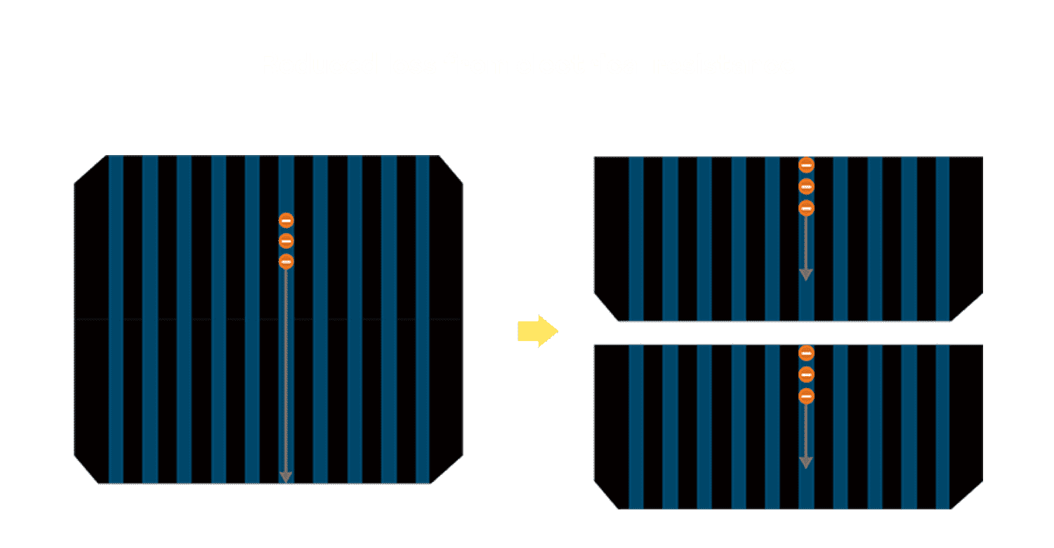 - 多条电极栅结构,,,,可有效降低外力对于电池的影响,,,,限制电池隐裂 (Micro-cracks) 范围,,防止电流传输路径 (Current distribution) 之损坏进一步扩大。。。