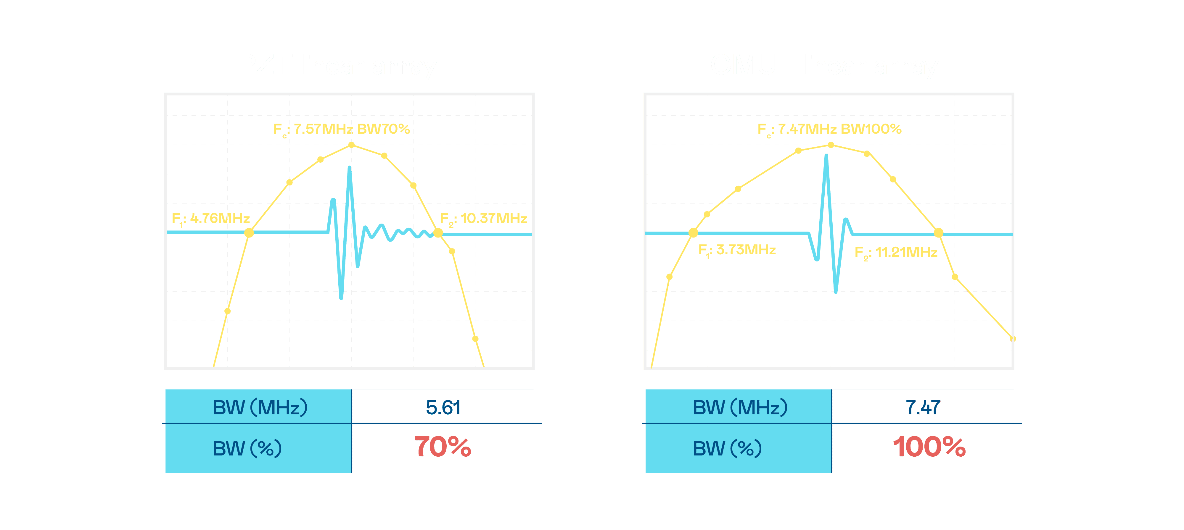 超音波影像的解析度高低,,,首先取决于探头能发出的讯号频宽。。银河集团 CMUT 可提供高清晰的超音波讯号,,,提供高频宽、、、高灵敏度、、、影像纹理细节更高的超音波影像,,协助医护人员缩短影像判读时间及利用精准的医疗影像进行诊断。。