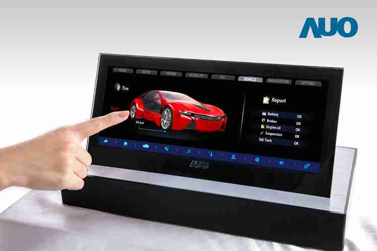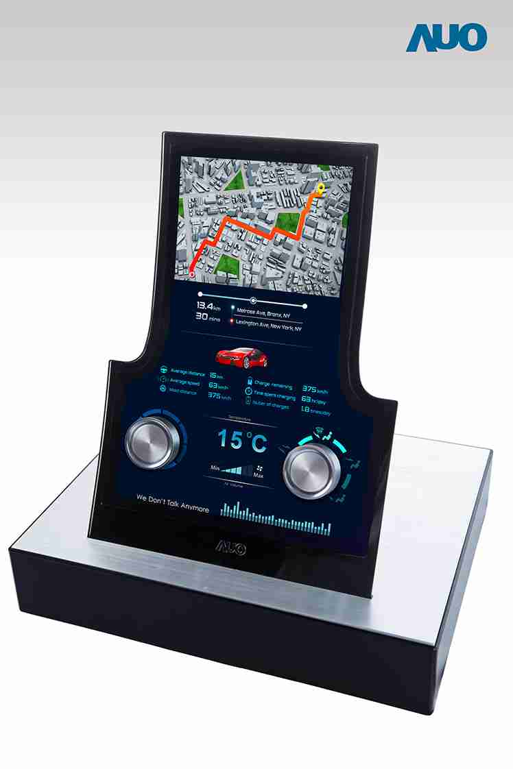 12.3 寸 Full HD LTPS 显示屏同样具备 1000 nits 高亮度,,,搭载内嵌式触控技术,,整合驱动与触控 IC 于显示屏制程,,,使显示屏厚度降低,,,为中控台创造更多机构设计空间。。应用于抬头显示器的 3寸 LTPS 显示屏具有高穿透率、、、1200:1 高对比度度,,,以及 297 PPI 高画素密度。。液晶最高可耐受到 110C 的高温 (TNI) 而不液化,,在阳光高温下维持优异稳定的显示效果。。